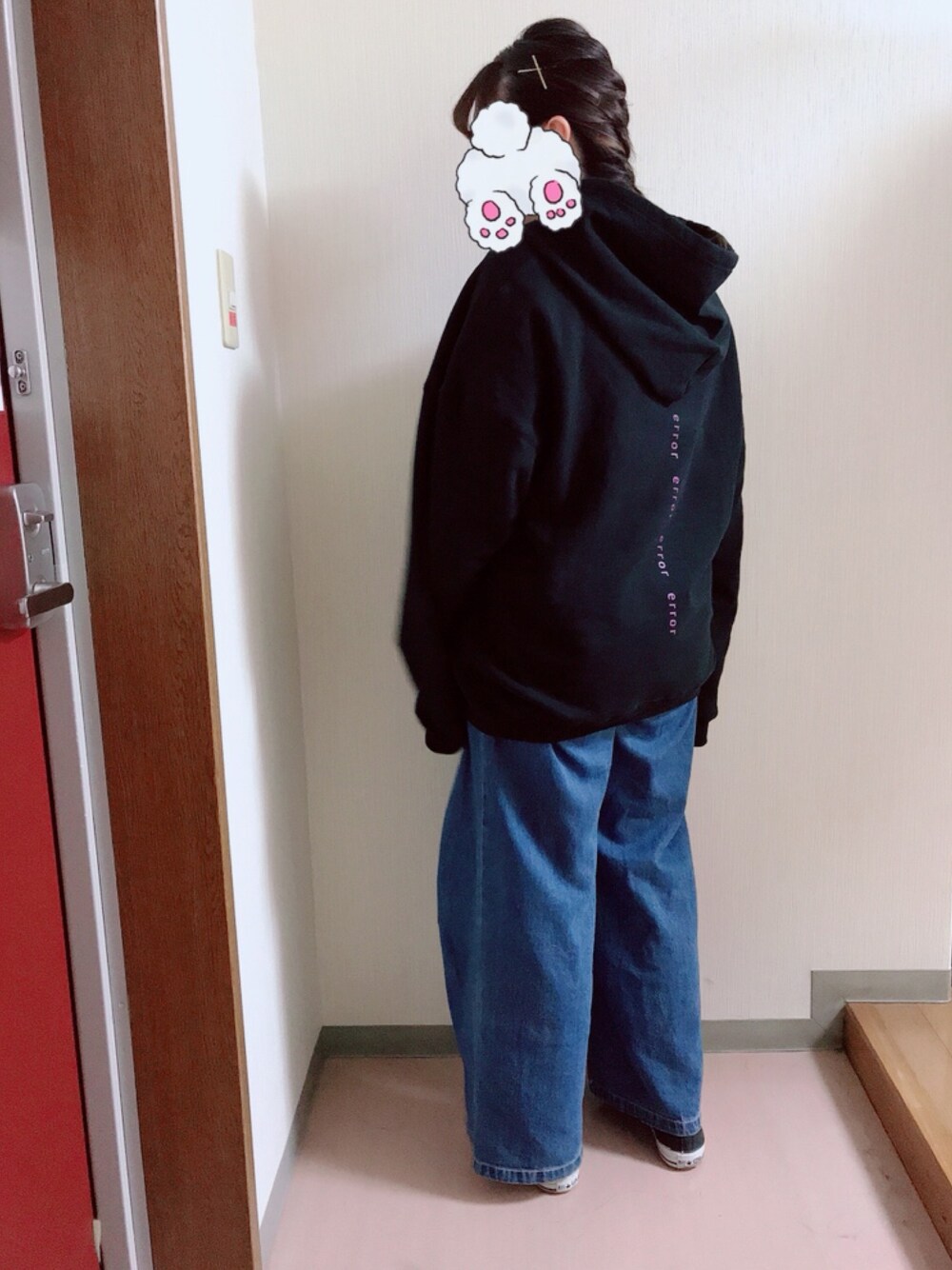 CHIHIRO YASUDAのパーカーで! ぬるっとゆるっとしてる感じに。 雨の日だったから髪もまとめてスッキリさせました😃✌️