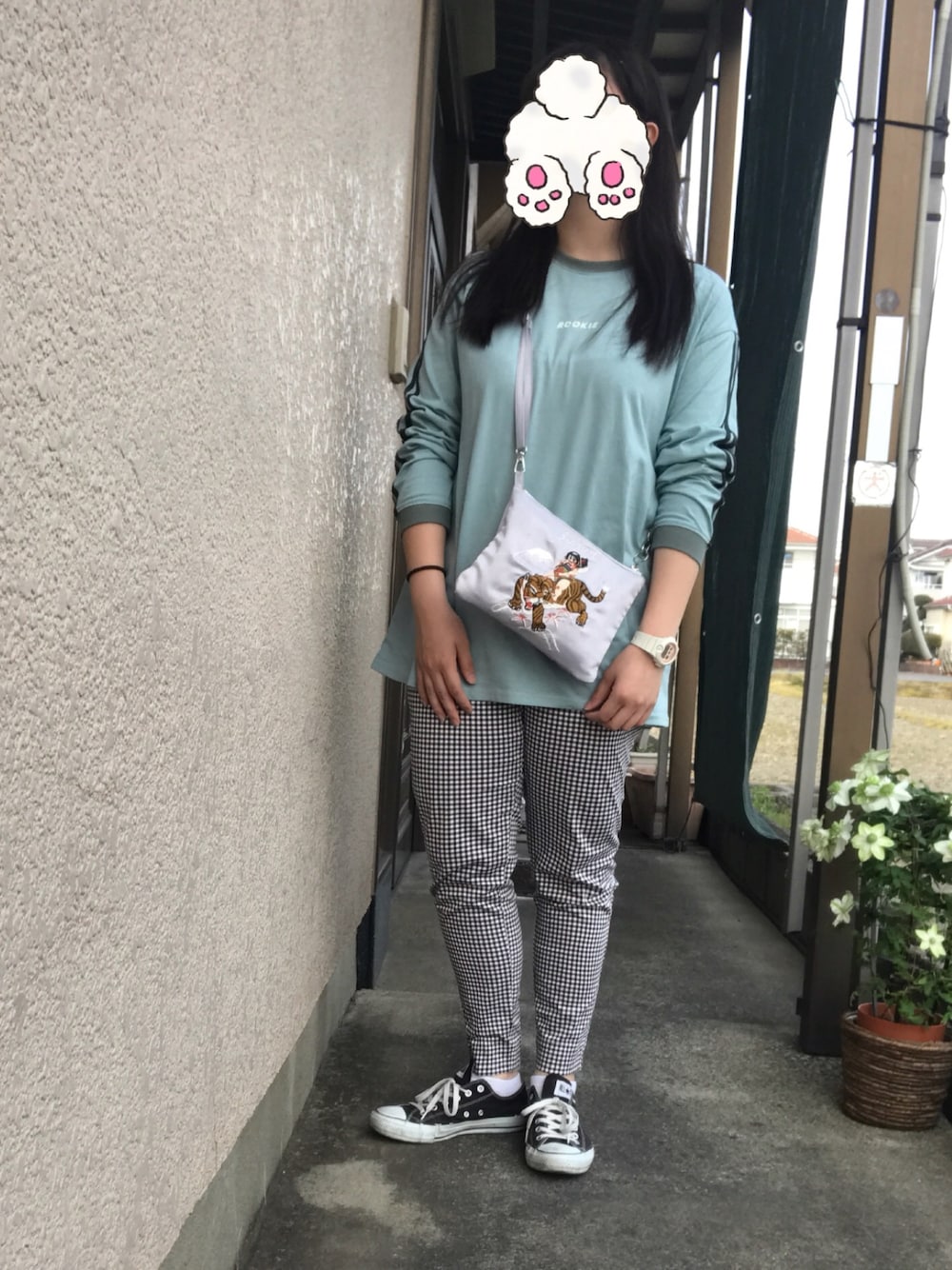 コンビニとバイト行くだけのゆるっとコーデ。 あったか過ぎるからロンT一枚で行けちゃうのが嬉しいなあ〜 CHIHIRO YASUDAの新作、激かわなんだよ