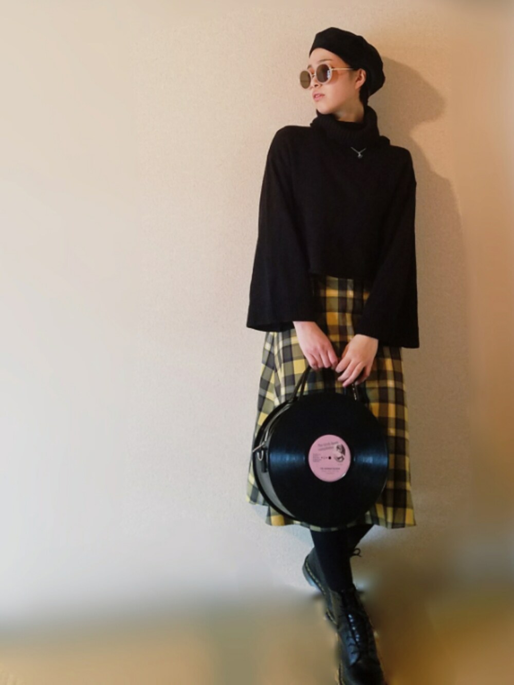 ロンドンガール。黒×黄チェック可愛いー。チェックスカートにスナイデルというアイテムを可愛く着ませんw ヴィヴィアンとマーチンとベレーでパンクな気分です。