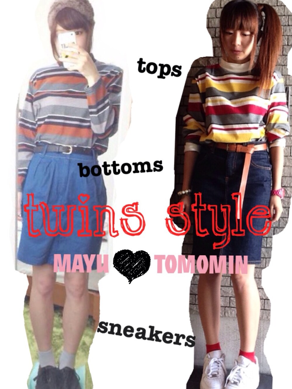 今日 は WEAR でも Twitter でも 仲良し で だーーーいすき な mちゃん こと まゆゆん との 初コラボ を 披露 させて いただきます っ ! (((o(*゚▽゚*)o))) WEAR で コメント して くれたこと を きっかけ に Twitter も フォロー して くれて 、今や 仲良し さん っ ♡ めっちゃ 可愛くて お洒落さん なので ぜひぜひ 遊び に 行って ください ! ♡ Kastane が きっかけ で お知り合い に なれた こと も あり 、 おんなじ tops を 色違い で 持ってること が 判明 ! コラボ が 叶いました 〜 (*´ω`*) ♡ デニムスカート と ベルト と スニーカー で 合わせて 、 打ち合わせ に なかった けど ヘアスタイル も ポニーテール で 完全 ふたご ! ついんず コーデ です ♡ まゆゆん 、 ありがとおおおお (((o(*゚▽゚*)o)))