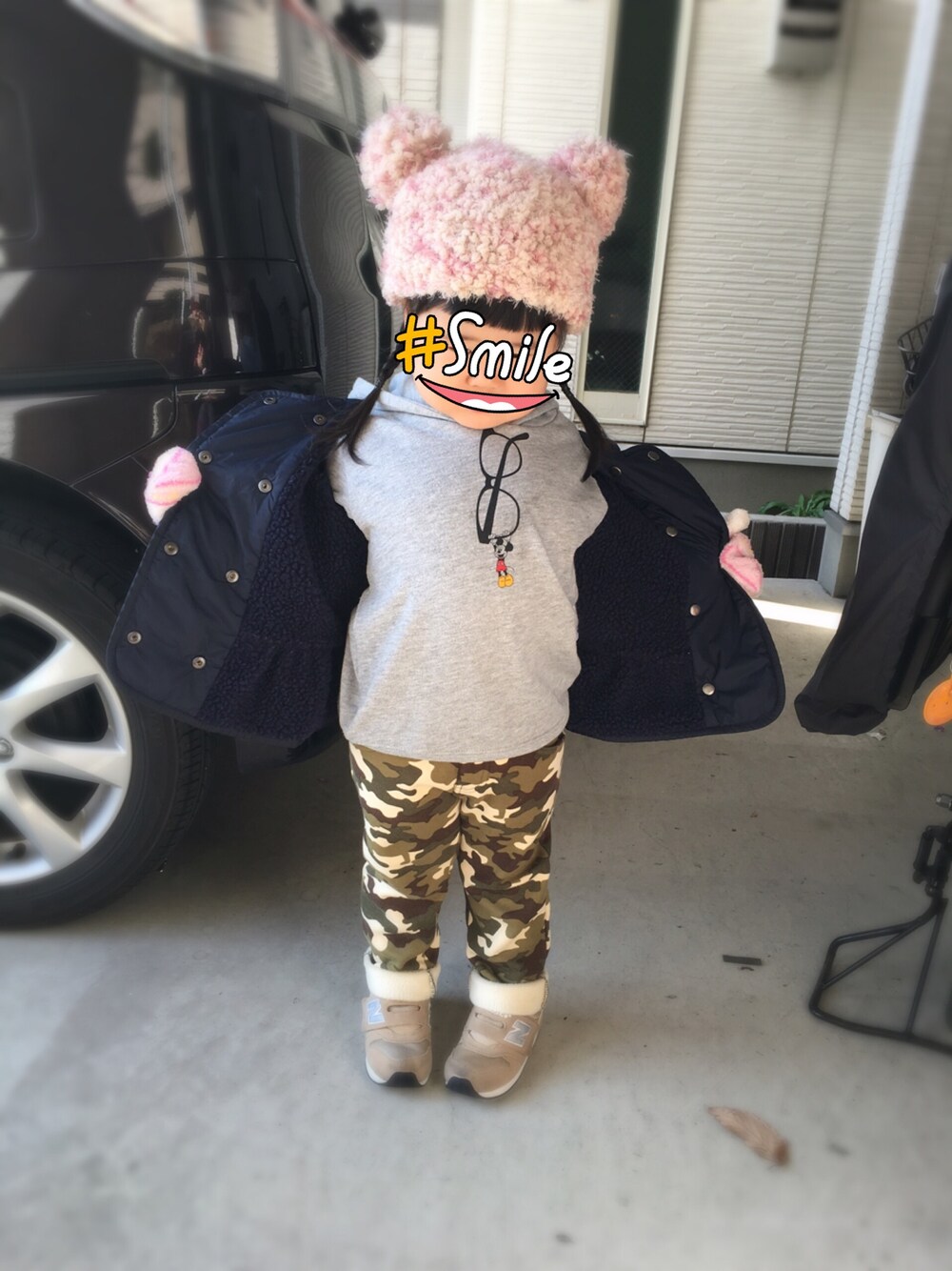 近所へお買い物 中見せてと言ったら大胆にジャケット広げてくれました(笑) 一昨日着てたパーカー、洗濯から戻ってまた着るという…ズボラ^_^; ボトムスもAEON@新年の帰省で2枚¥2000で購入したもの✌️ 最近boysアイテムが私のお気に入りです❤️