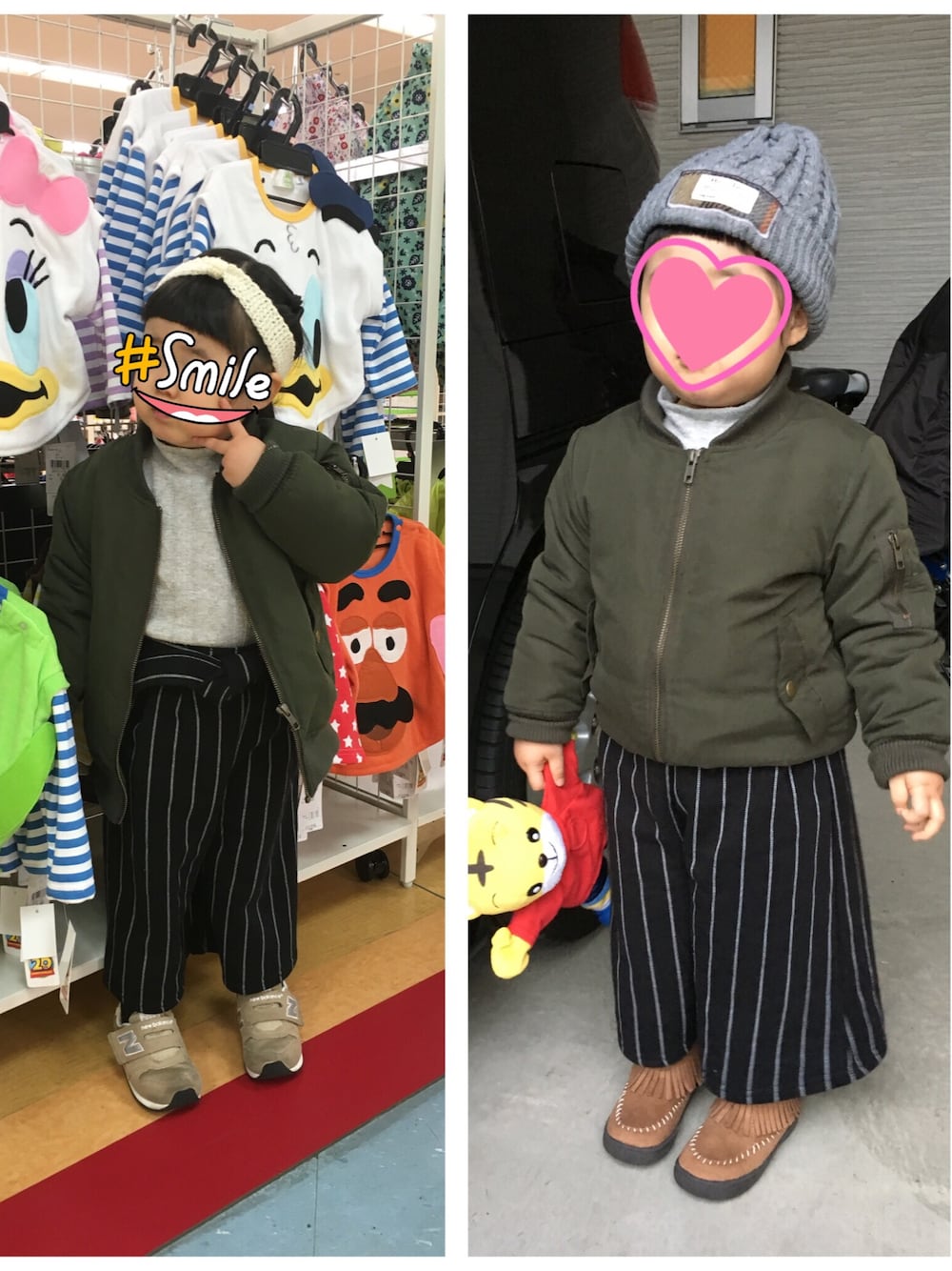 昨日のコーデ☆ 初のワイドパンツ❗️ birthdayの値下げコーナーで発見して即買い❣️ WEARやるまで子供にワイドパンツを履かせるという考えがなかったけど、ワイドパンツ可愛い❤️ 太ってるからバランスが悪いんだけど…💧 左→雪が降るかもとのことで買い出しへ 右→帰って来たのにお散歩行くというので近所へ 前開けるか閉めるか、帽子、ヘアバンドなどなど小物で印象変わる💡 フリンジブーツもbirthdayで即買いしたけど最初の買い物では履いてくれず… 2度目のお出かけでは履いてくれたけどやっぱり可愛い😍 子供の大人コーデ、ハマりそう😽 追伸 また母さん小窓に登場してみた👀 MA-1、ワイドパンツ、ハイネック、ハリスツイードの帽子…なんとなくリンクしてる?かな??