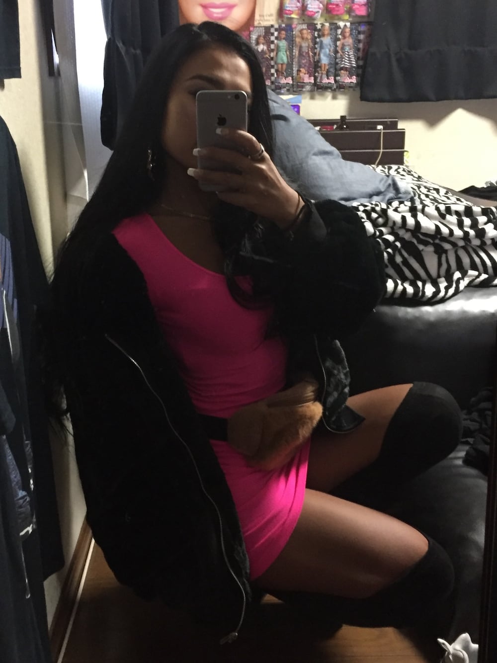 ちょー昔にこたネオンピンクのボディコンを今風にきてみた💕