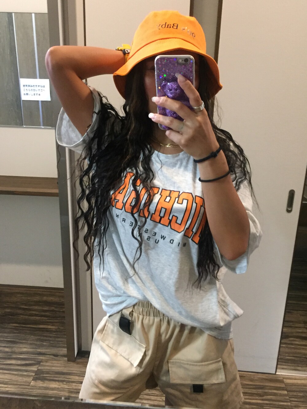 イエロー系のアナログ腕時計を着用したレディースの夏コーディネートの1枚目の写真