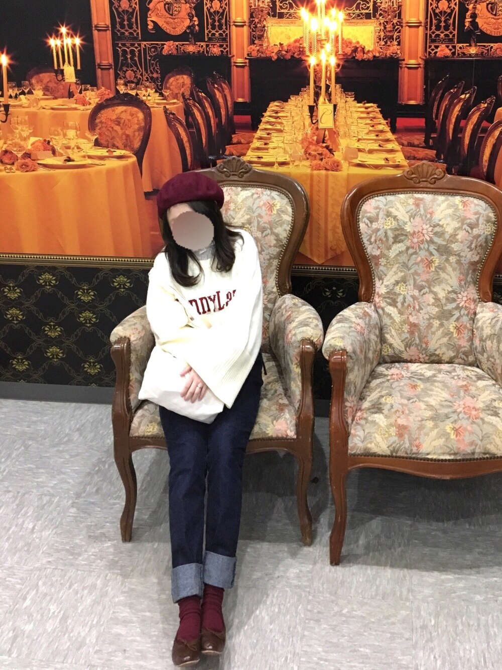 昨日のコーデ🐋 お休みだった昨日は、夜は湖のイルミネーションに連れてってもらいました。 とっても寒いところなので、厚着してます。その時は、コートとマフラーもフル装備してました。 かなり早めに出て、時間に余裕があったので、ノリで少し遠回りして人気のスポットへ。とっても可愛いところがたくさんあるので、少しパシャりしてお土産物見てきました^_^ 昼間は10度くらいで、コートなくても過ごせたのでこの格好です! AMOちゃんがしていたコーデの真似っこです♡ クリスマスシーズンにぴったりでかわいいなぁ…と思って、真似てみました(*^^*)