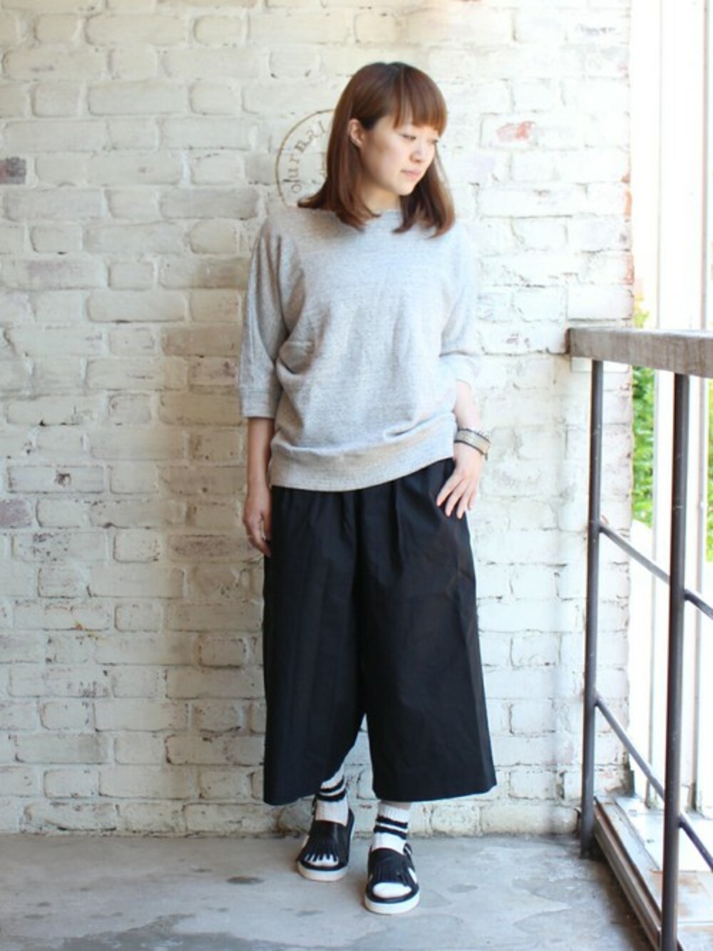 この時期おすすめのスウェットスタイル◎ 今時期にさらっと着こなしたいスウェットスタイル。 クロップドのパンツに、足元はソックス、サンダルで。