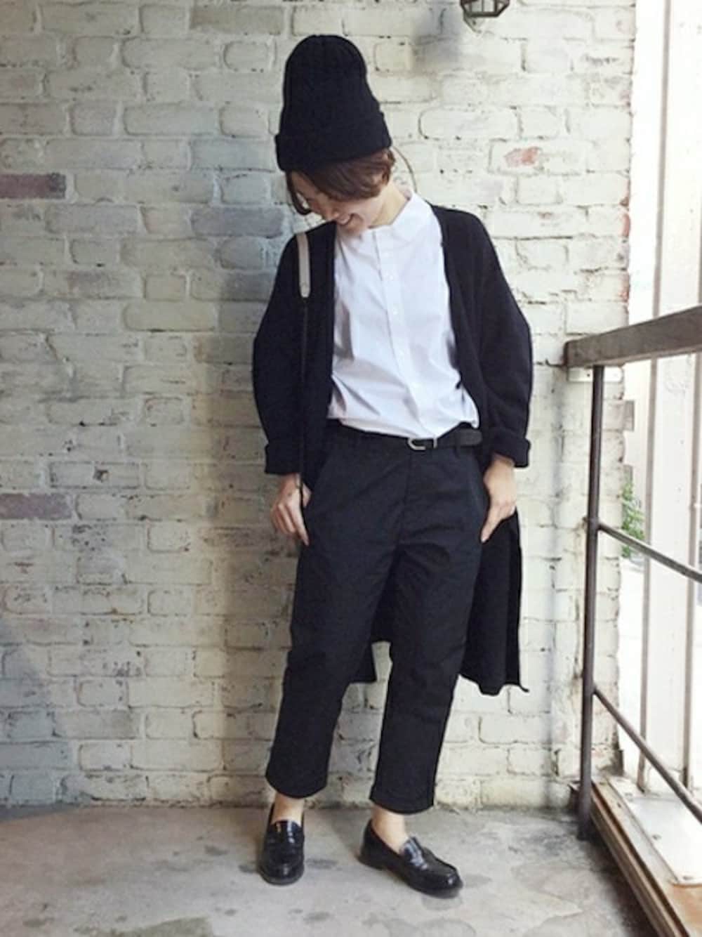 マニッシュスタイル シルエットの綺麗なパンツにはお気に入りのシャツを合わせて