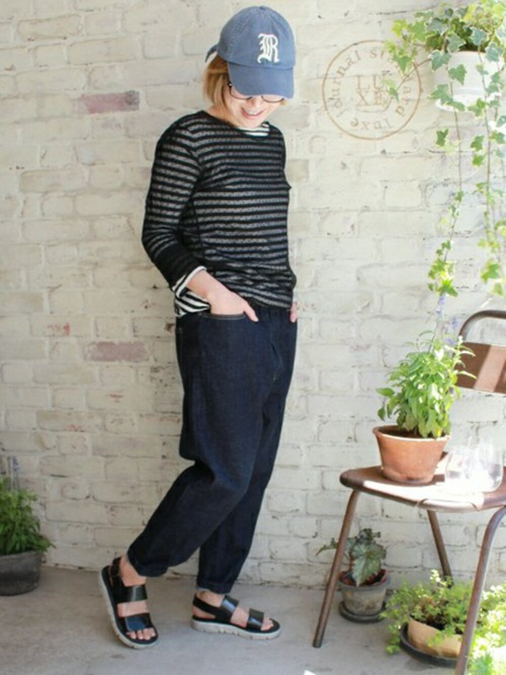 ショップでもご好評頂いているサルエルデニムはデイリーに活躍してくれるオススメのアイテム! 定番のボーダー×デニムのコーディネートはキャップや、トップスのレイヤードで旬なスタイリングに。