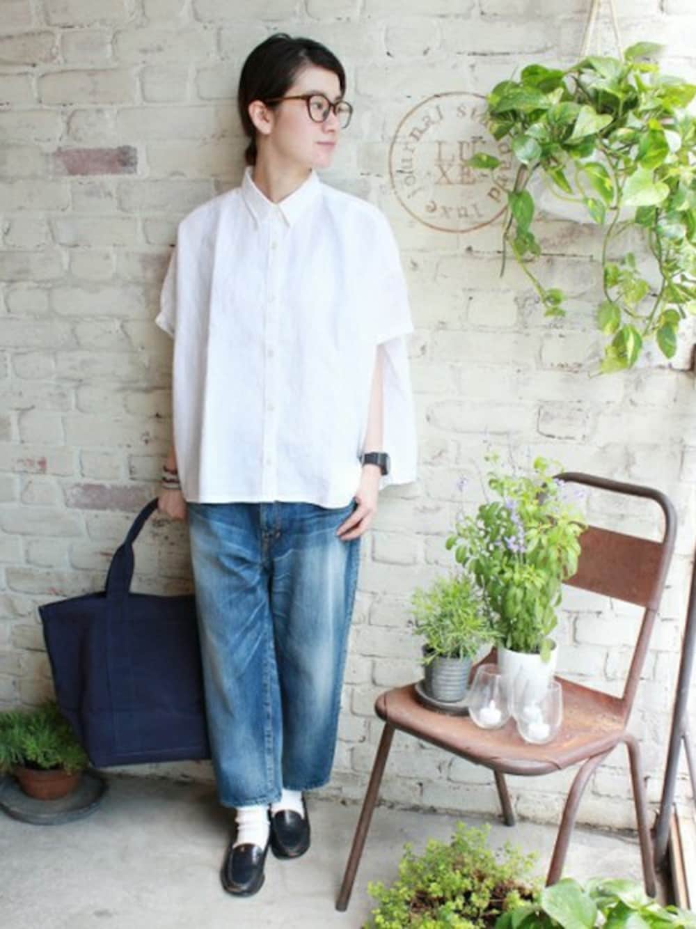 さらりと..なシャツスタイルが今年風。ダメージデニムにワイドシルエットのシャツでとことんメンズライクに。 足元はSOX+レザーシューズでカジュアルダウンし過ぎない着こなしに◎ 大人のカジュアルスタイルに仕上がります♪