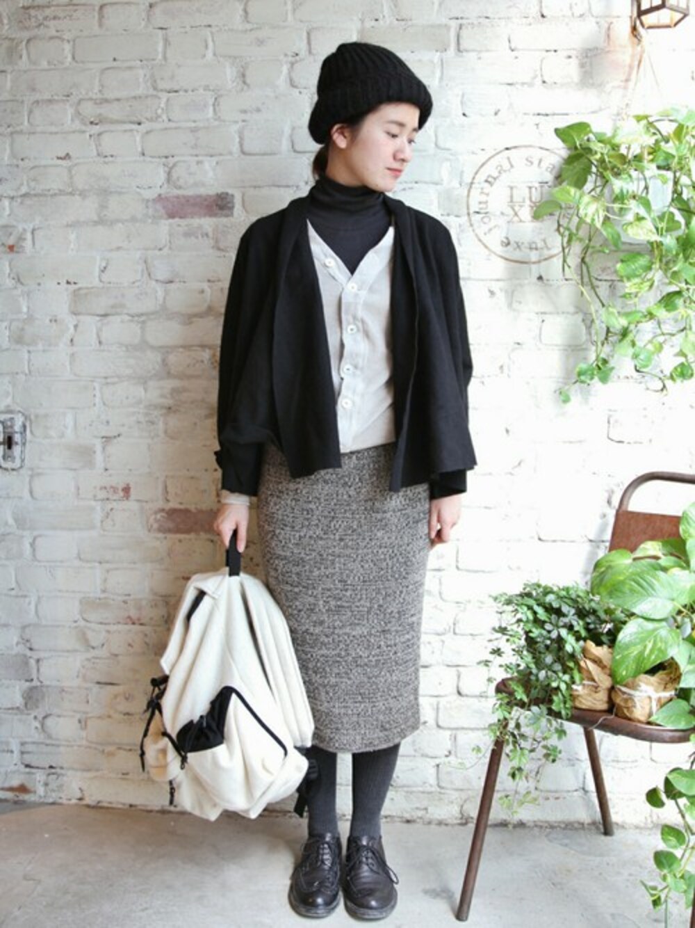 どんなスタイルにもあわせやすいショールカーディガン。 タイトなシルエットのスカートに合わせ大人な着こなしに◎ リックでラフさをプラスするがポイントです!