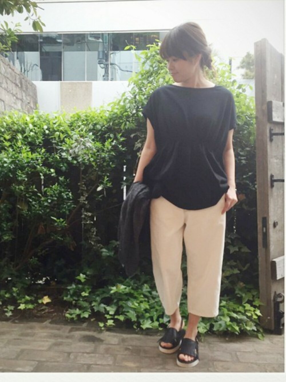 journal standard luxe 表参道店スタッフのTシャツ/カットソー「17/-天竺 ギャザーフレンチプルオーバー#」を使ったコーディネート