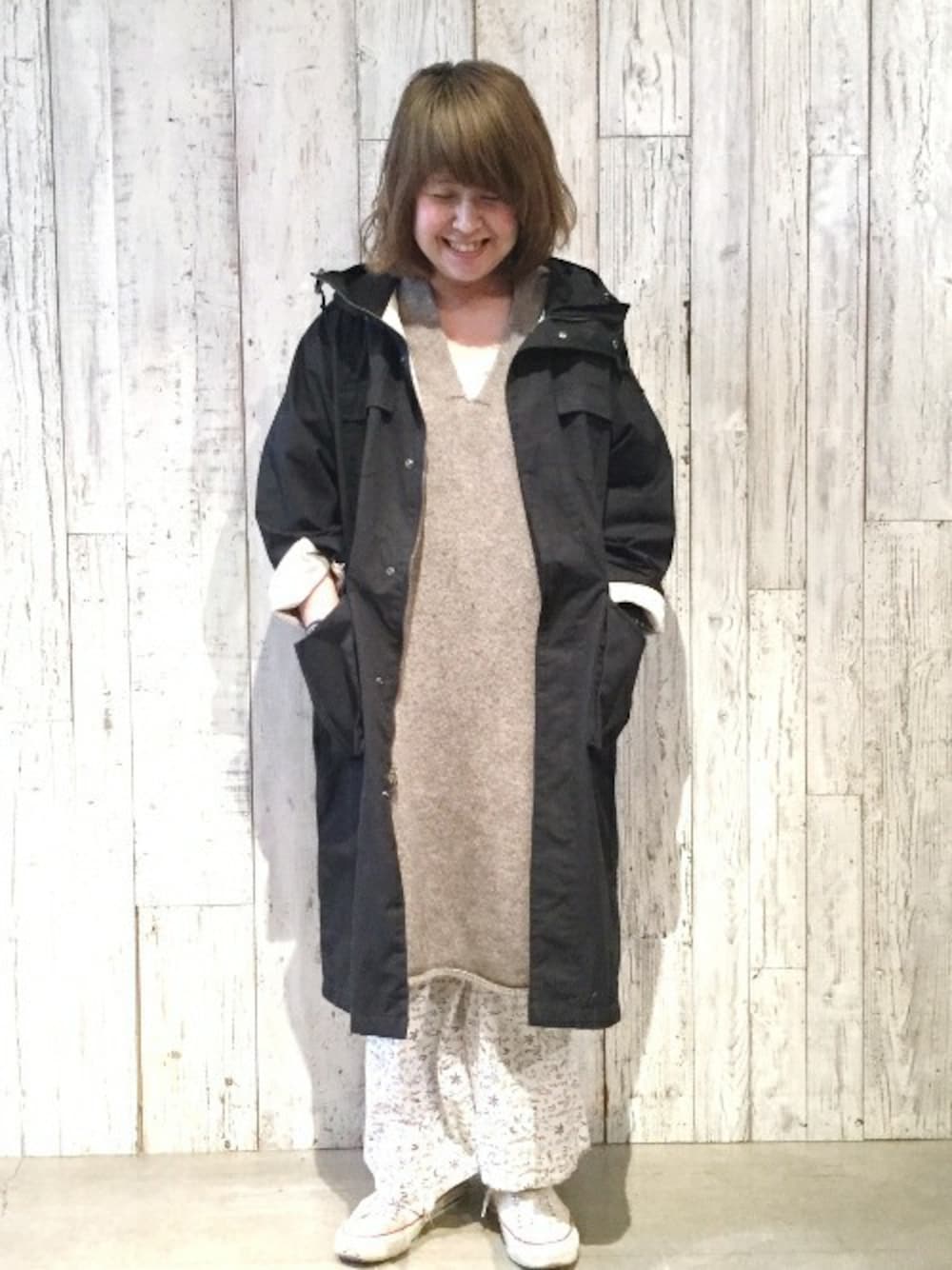 journal standard luxe 表参道店スタッフのマウンテンパーカー「高密度ウェザー ロングマウンテンパーカー#」を使ったコーディネート