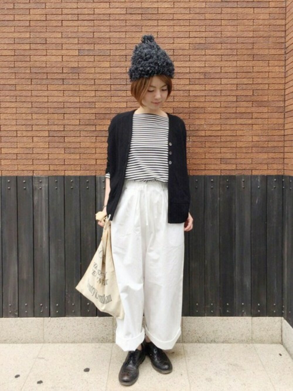 カジュアルなモノトーンスタイル◎ ラフにあわせたモノトーンスタイル。 モードになりがちなブラック×ホワイトコーデですが、インナーにボーダーをあわせることでカジュアルなスタイルに◎ シューズはレザーアイテムでかっちり感をプラス。