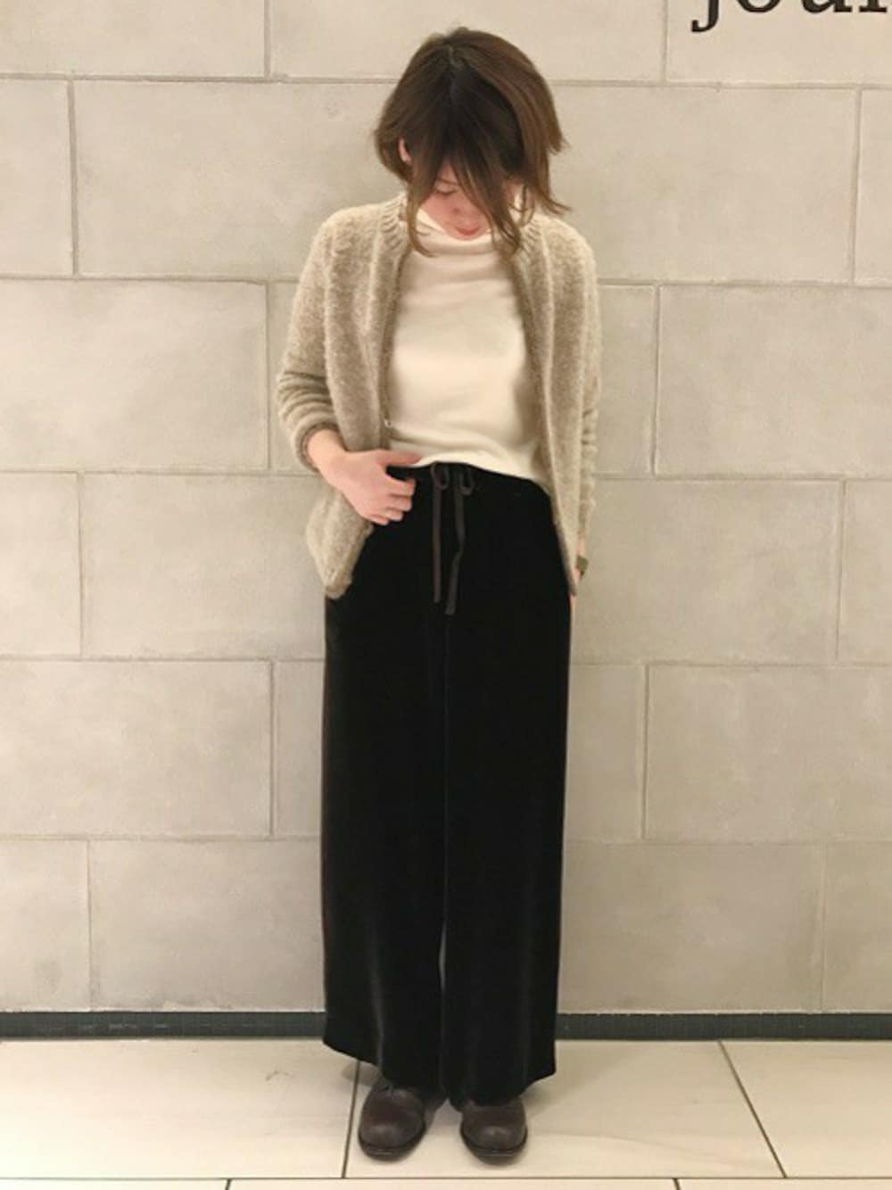 注目のベルベットパンツ。 リラックスした履き心地で、楽ちんなのも魅力です。