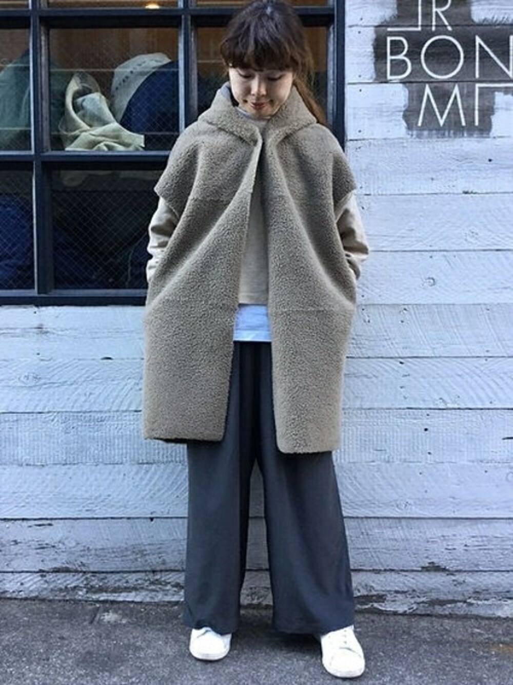 K.Hのその他アウター「ムートン フードベスト_#」を使ったコーディネート