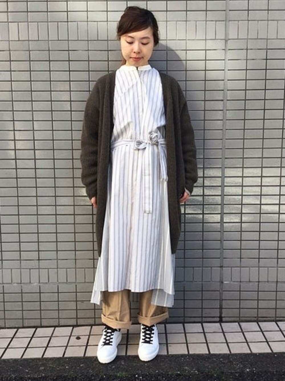 K.Hのシャツワンピース「タイプライターストライプコンビシャツワンピース_#」を使ったコーディネート
