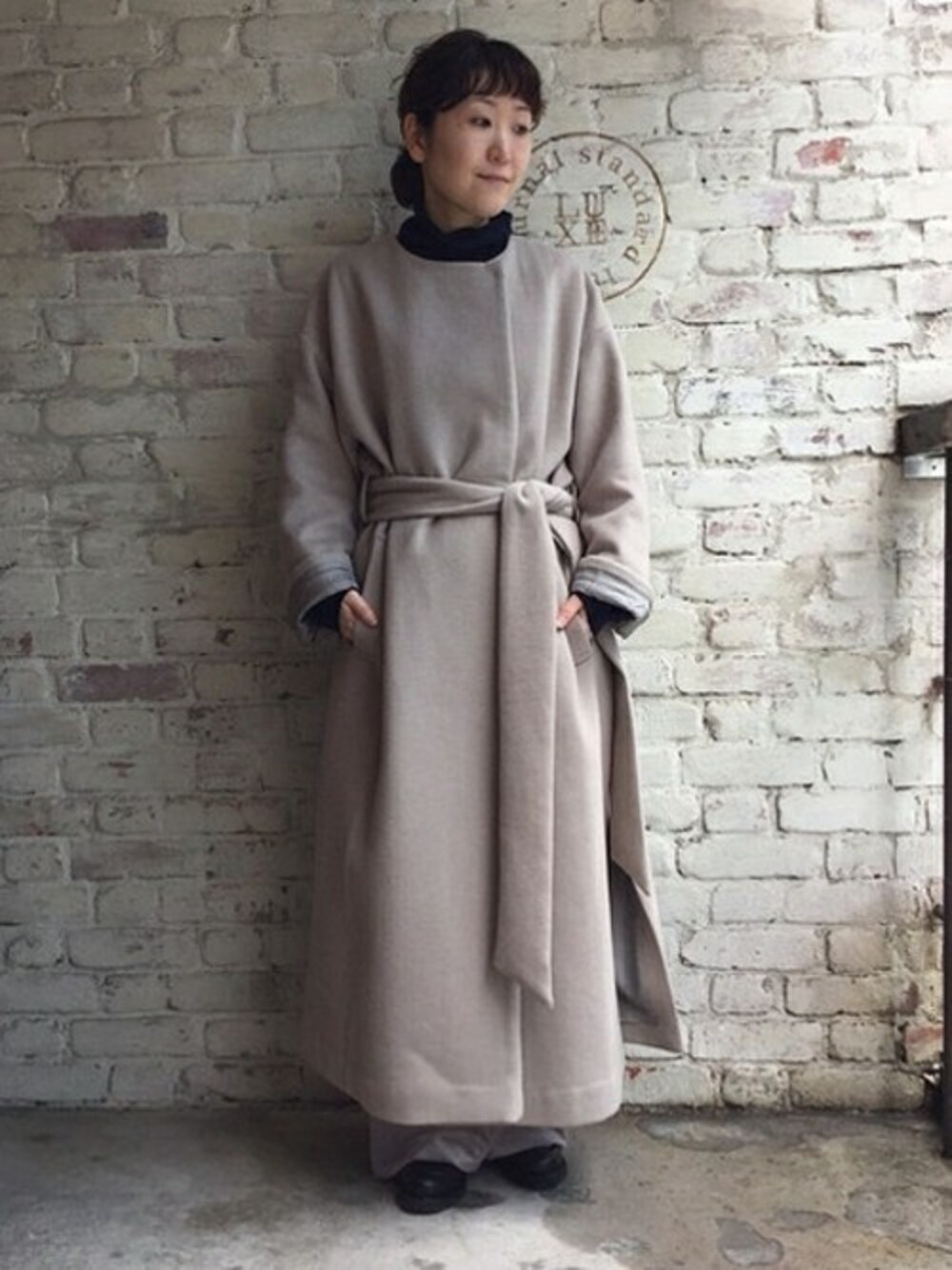 Y.Yのその他アウター「ヤクビーバーノーカラーロングコート_#」を使ったコーディネート