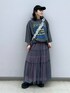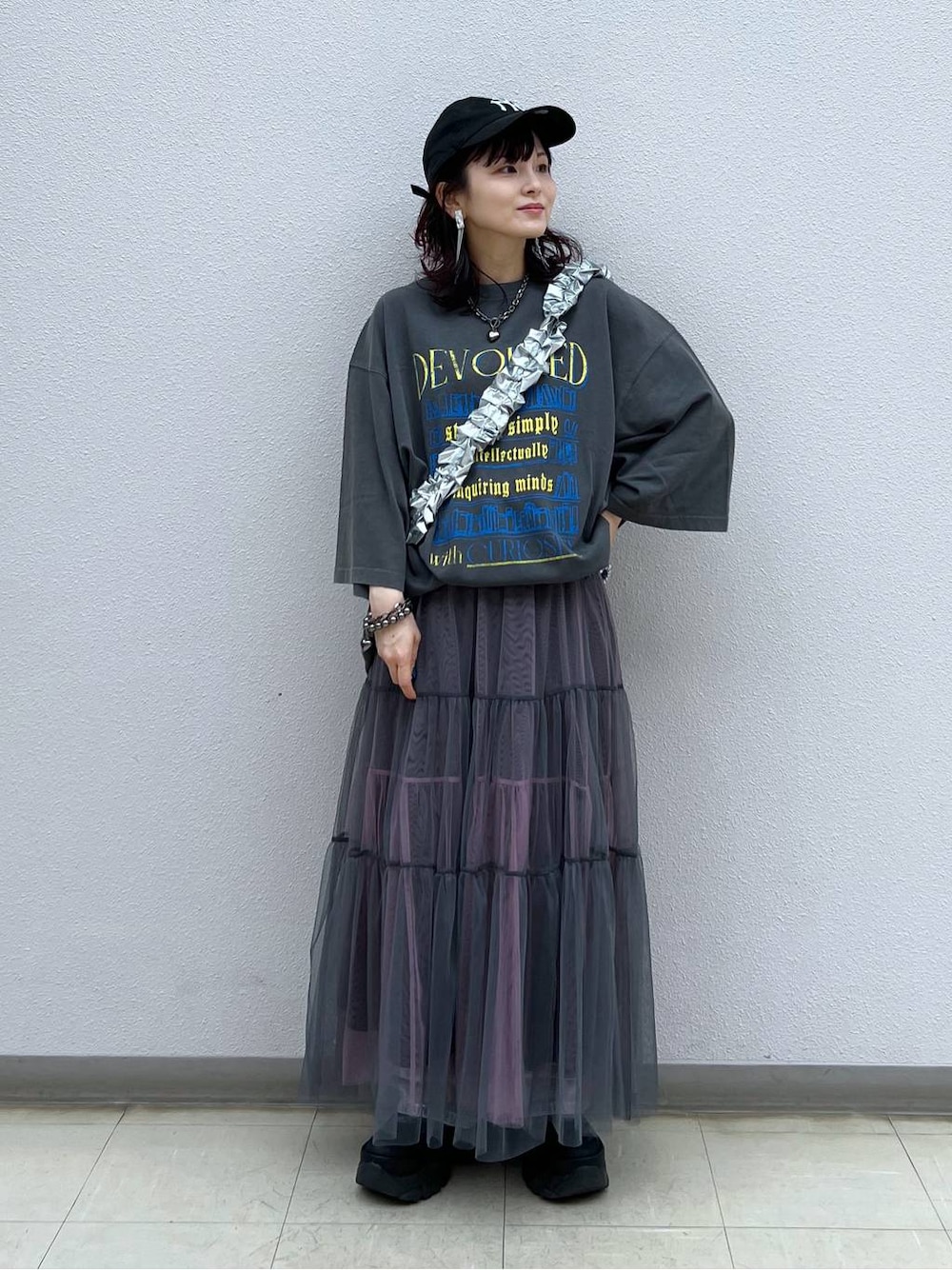 セールのお買い得コーデ💸 ゆるっとオーバーに着れるTシャツは Mサイズでこの大きさ! 梅雨時期や夜のお出かけにちょうどいい1着です☺︎ 腰回りが気になりやすいチュール素材のスカートも このスカートならすっきり着痩せ◎ グレー✖️ピンクの配色が珍しくて可愛いです🫶 デニムをレイヤードさせてます✌︎
