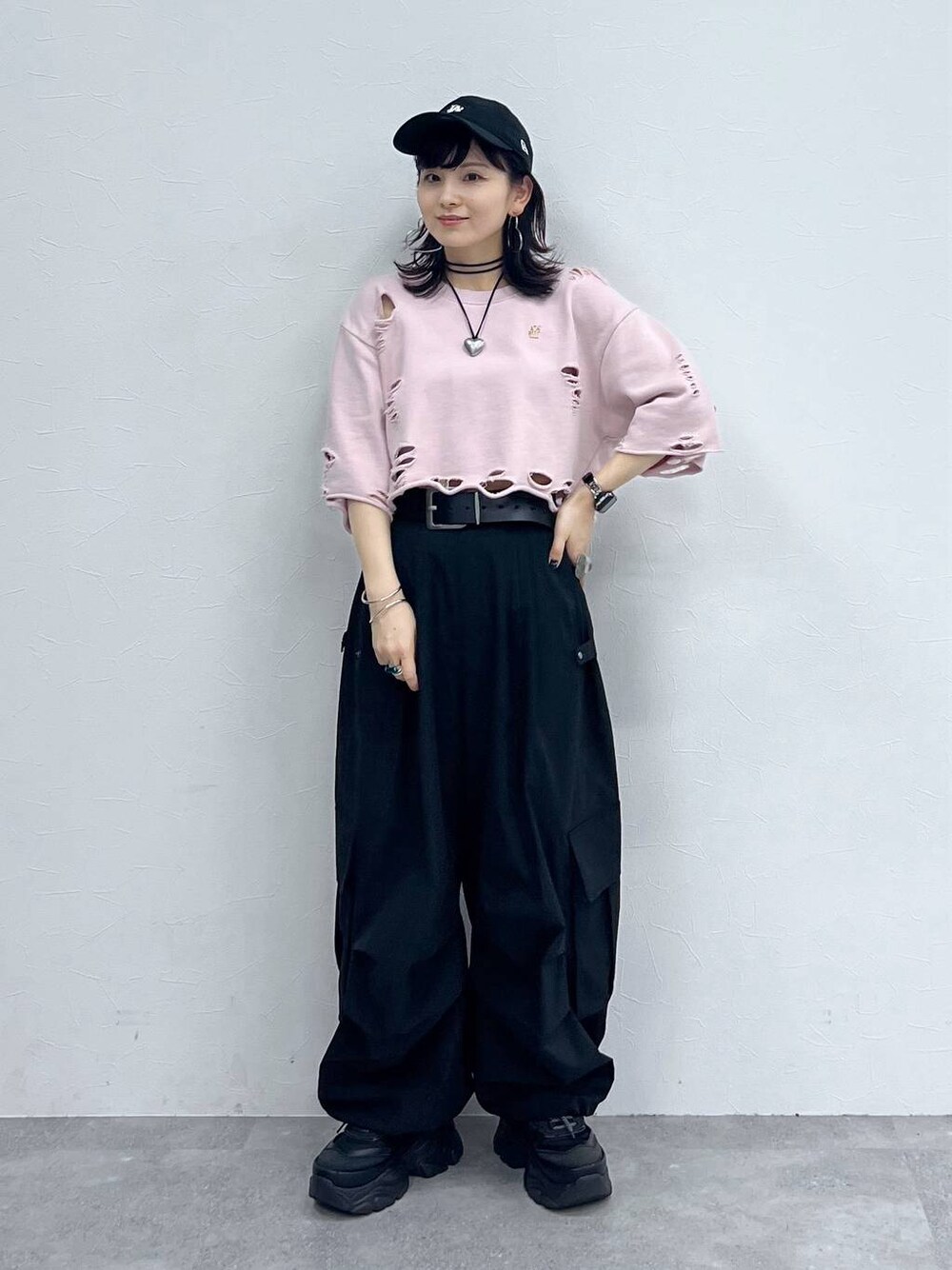 さ や こ(PAGEBOY 本部)のカーゴパンツ「【UNISEX/3サイズ展開】タックパラシュートパンツ」を使ったコーディネート