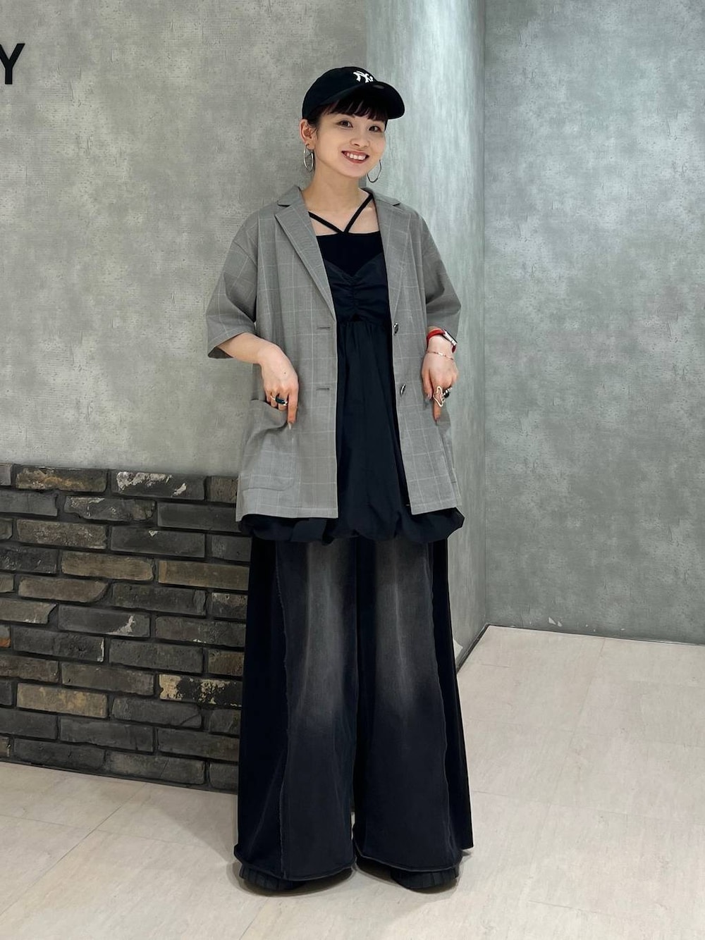 夏にぴったりなジャケットが主役なコーデ🫶 ちなみに私はブラックをリアルバイしました✌︎ デニムだけだとシンプルすぎる、、 そんな悩みにはオススメ☆レイヤードスタイル! バルーンキャミOPは重ねるだけで 一気にオシャレ度UPします❤️