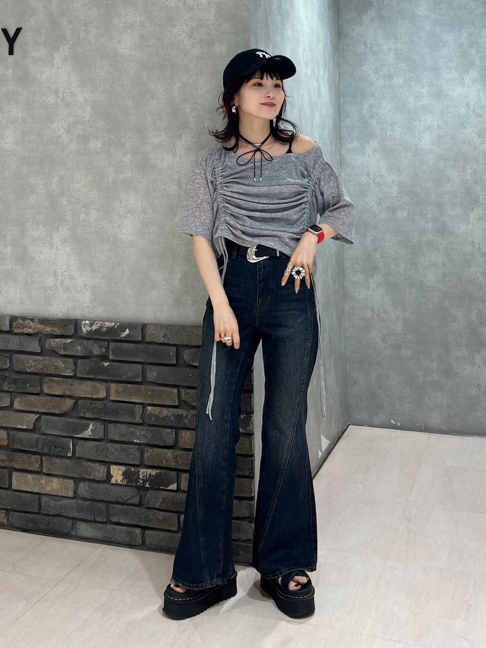 大人気の美脚デニム⭐️ サイズ展開も豊富で幅広いスタイルのお客様に◎ こちらはXSサイズを着用しています! ぺたんこ靴でも合わせられる丈感です^^ トップスは生地も薄手で夏も二の腕を出さずに 涼しくおしゃれなコーデが楽しめます✌️ キャミもセットなのでインナー問題も心配ありません♪
