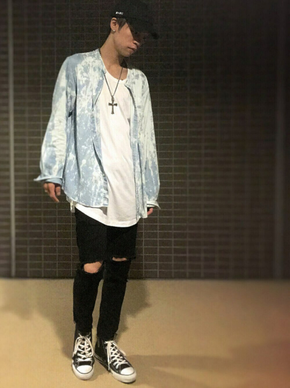 おはようございます! いつもいいね、SAVE、コメント、フォローありがとうございます😌✨ 最近のお気に入りです! 色をサボってます! デニムシャツは自分で加工してみました!