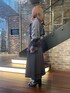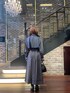 デニムライクとブルートーンのグラデーションでブロッキングしたインパクトあるトレンチコートをシンプルにコーディネートしました。