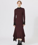 レイヤード見えが特徴のニットワンピースにロングジレを合わせて、縦のラインを意識しました◎ 差し色のマフラーは顔まわりを明るく見せてくれます。