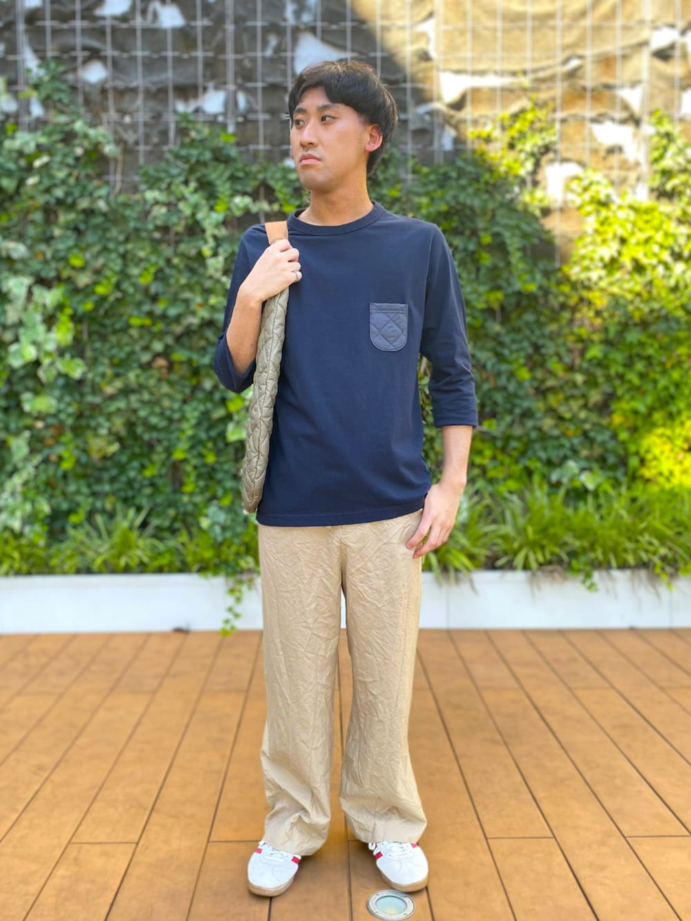 Jackmanの新作ロングスリーブTシャツと、ラウンドバッグを使用したコーディネート。 全体的にシンプルさを意識しつつ、キルティングのバックで差別化できるようにしました。 キルティングのバックは非常に軽く、セキュリティーポケットもあるため、様々なシーンで使用しやすいバッグです。 ===== Lavenham 着用アイテム ■ T-shirt: Jackman X Lavenham Lightweight Quilt Pocket L/S Tee Mens / LV5315LV / Dark Navy / 171 / SIZE.M ■ Bag: Quilted Round Bag Unisex / LL10277 / Cork / C62 / SIZE:1SZ ===== ■ Model LAVENHAM ミント神戸 TAWA / 172cm / 60kg / 普通体型 サイズ感や在庫状況につきまして、お気軽に店舗までご連絡ください。 ===== ■ 店舗情報 〒651-0096 兵庫県神戸市中央区雲井通7-1-1 ミント神戸4F TEL:078-891-5282 INFO: 最大40%OFFのサマーセール開催中!