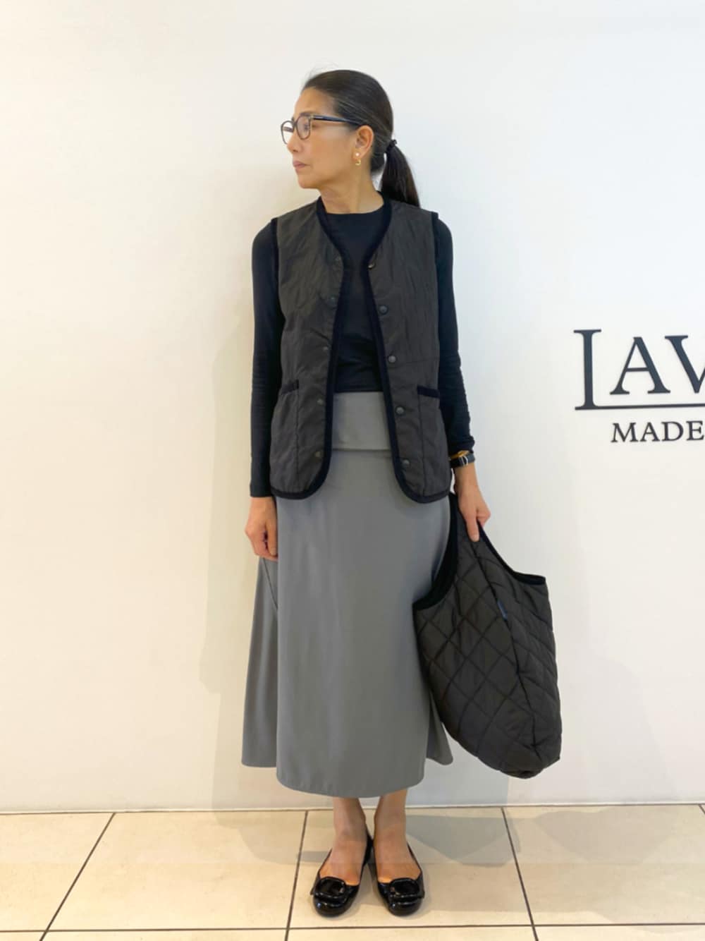 メンズの「Unwadded Thornham」を使用し、カラーを2色で抑えた大人の女性らしいコーディネート。 ジレを前開けで着用することで、エレガントの中にカジュアルさを演出してみました。 「Round Bag」は、手持ちとしても、肩掛けとしてもご利用いただけます。 ===== Lavenham 着用アイテム ■ Gilet: Unwadded Thornham Mens / LV7045 / Sable Black / F44 / SIZE.XS ■ Bag: Round Bag Unisex / LL10277 / Sable Black / F44 / SIZE.1SZ ===== ■ Model LAVENHAM ミント神戸 TOMO / 163cm / 細身体型 サイズ感や在庫状況につきまして、お気軽に店舗までご連絡ください。 ===== ■ 店舗情報 〒651-0096 兵庫県神戸市中央区雲井通7-1-1 ミント神戸4F TEL: 078-891-5282 INFO: ラベンハム ニュウマン高輪店 9/12(金)オープン