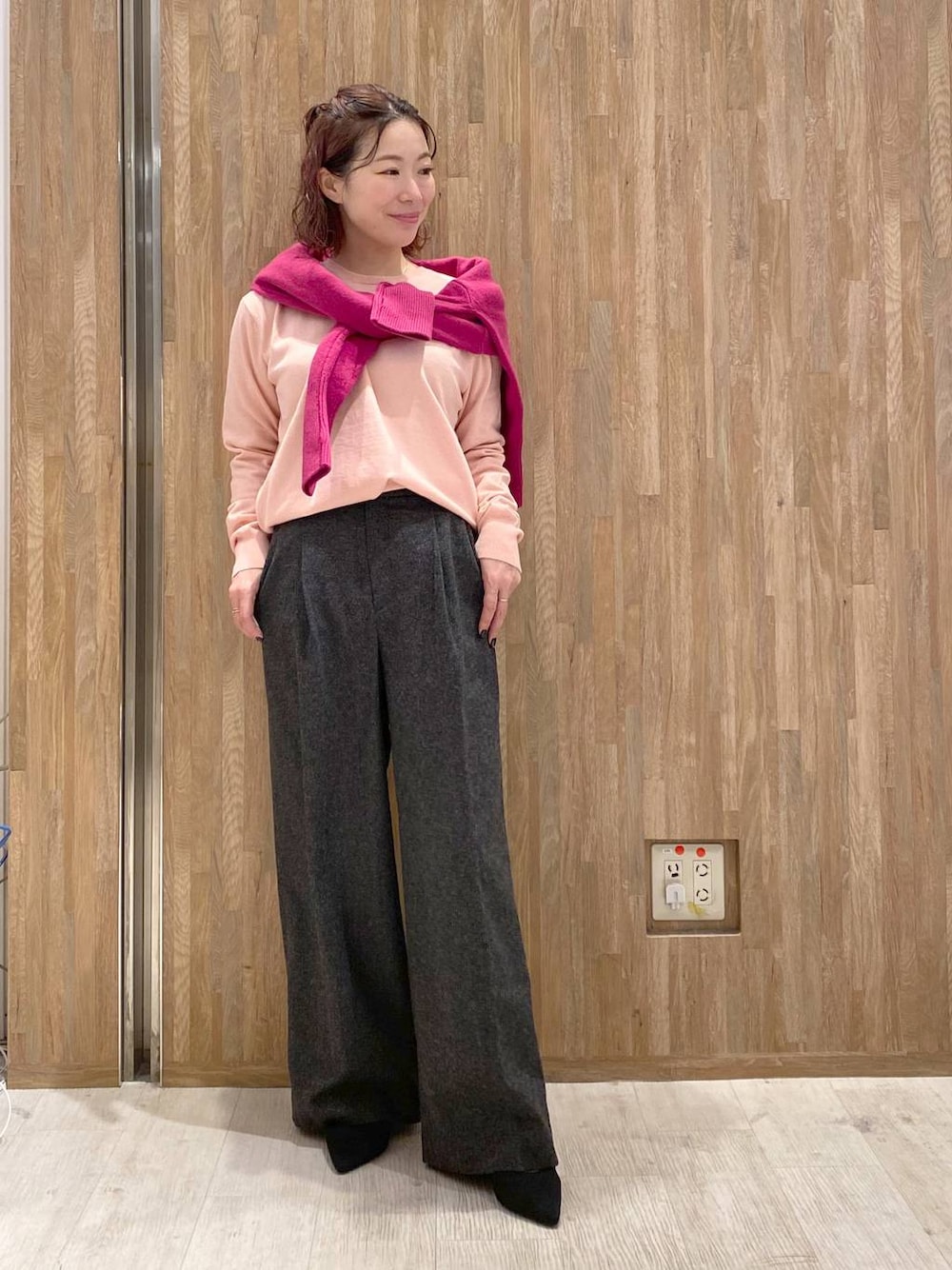 このピンクすっごい可愛くないですか?🥺 イエベさん向きピンク♡ 肩掛けしてるピンクのニットはブルベさん♡♡ ベーシックなシルエットで着れるので、 カラー物を普段着ない方でもコーディネートに迷わないのが🙆♀️