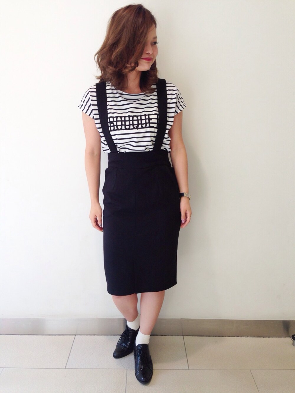 ハイウエストのスカートはサスペンダーが取り外し可能です◎ 膝丈スカートで秋先取りですね! お店も少しずつ新作が入荷してまーす^^