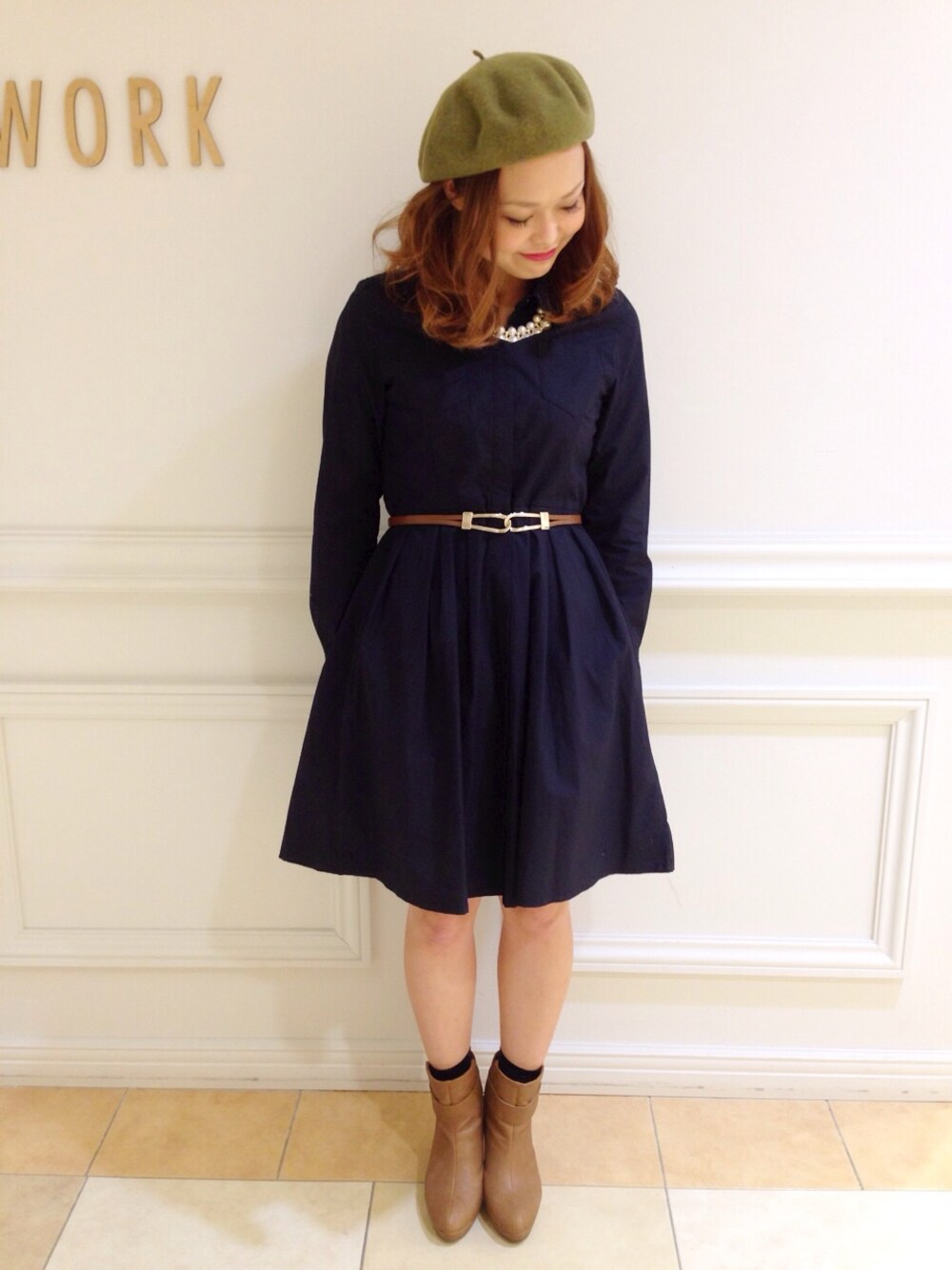 h.nyaのワンピース「タイプライターシャツワンピース」を使ったコーディネート