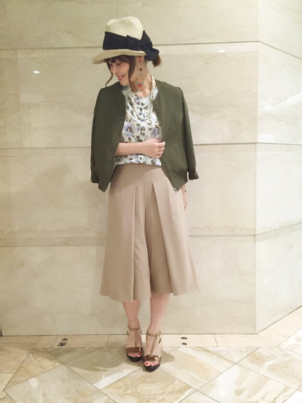 今年の夏はカーキやベージュなどの落ち着いた色合いな気分です** 前後どちらでも着用できるトップスは敢えて後ろを前にして着ています。