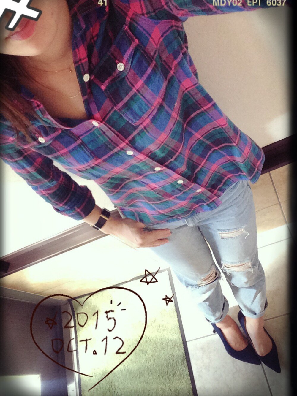 秋は、チェックシャツの出番が増える〜! 秋晴れの今日は、洗濯物がよく乾きます。