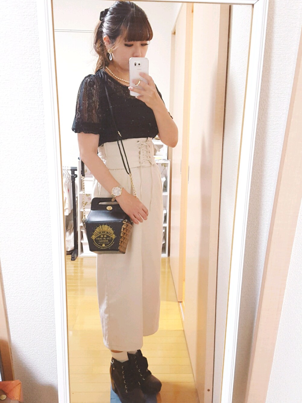 モノトーンが続いているので敢えて今日も続けてみました。 自転車に乗る時にタイトスカートは厳しいかなーと思ってこのスカートしばらく履いていなかったのですが、先日ドットのスカートが余裕だったので、これももしかしていけるかも?と思って履いてみましたが… スリットが深めなのでかなりめくれてミニスカートみたいになってしまいました笑 まぁ誰も子供送るオカンの服なんて見ていないと思うのであまり気にしないですが。 でもやっぱりちょっと乗りにくいので、このスカートにかわる白いボトムをゆっくり探してみようと思いました。