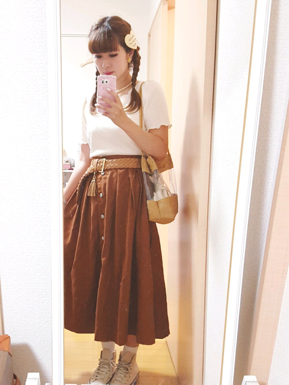 昨日7/9のコーデ。 届いたばかりのmerlotのスカート履きました。 新しいんですが、あまり目新しさはないです…笑 でもかわいい茶色で、長くベーシックに使えそうです♥ すごく時間がなかったのでなんとも言えないコーデです。