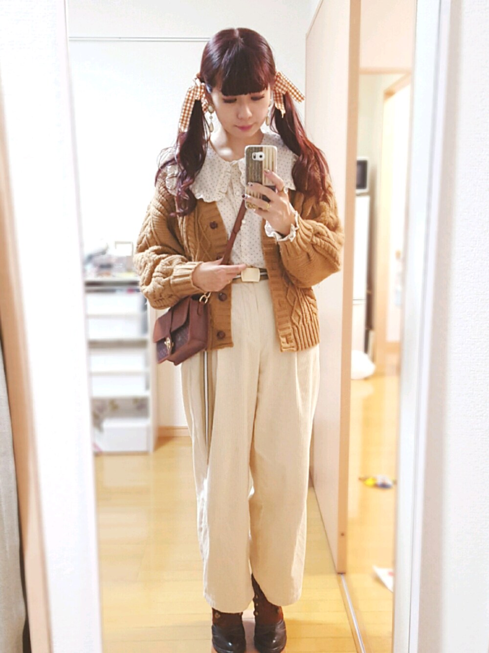 最近買ったものばっかりコーデ。 このカーデすごく暖かくて、暑がりな私は一日の間に何回も着たり脱いだり着たり脱いだりしています💦
