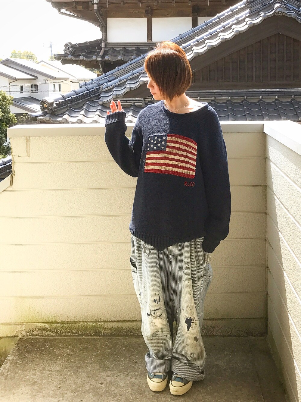ラルフローレンの星条旗コットンセーター🇺🇸 メンズのLサイズをぶかぶかコーデしましたよ♪♪