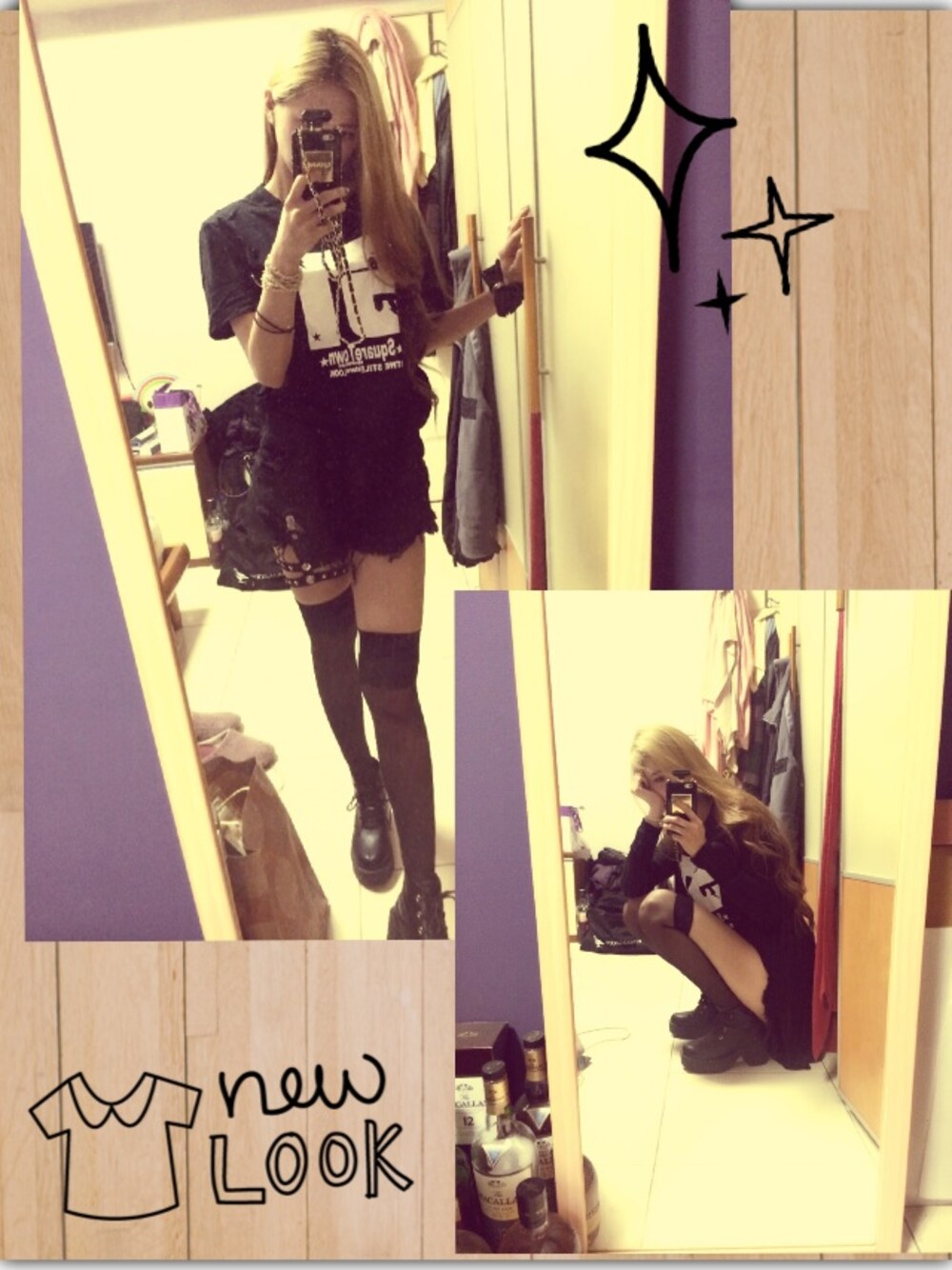 ブラック系のTシャツ/カットソーを着用したレディースの春コーディネートの1枚目の写真