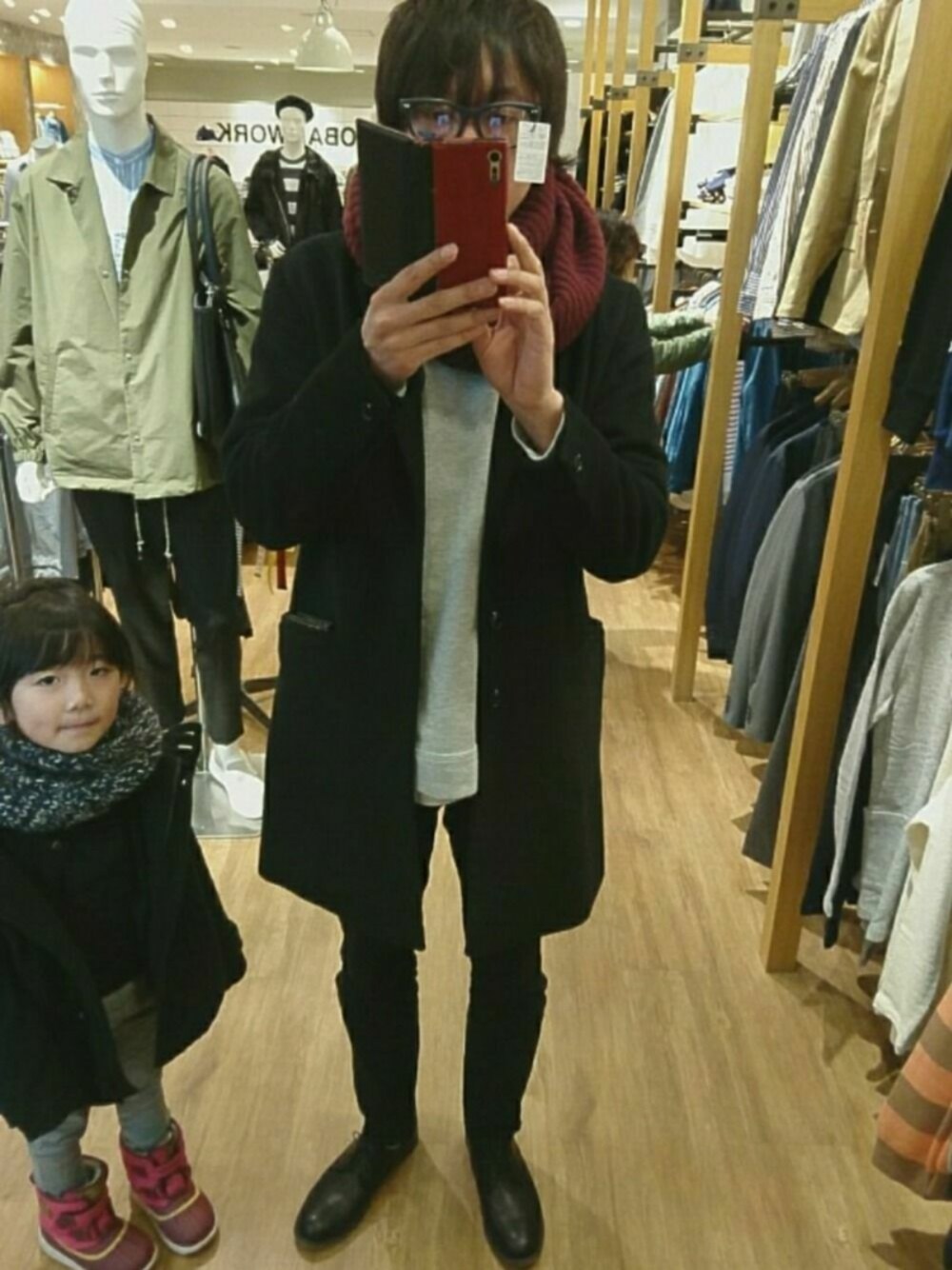 久しぶりの投稿です😆 めずらしく平日休みなのでランチ後にぷらぷら🎵 眼鏡の試着ついでに撮りました(笑) 首廻りの巻物が大好きです☺️ あっ、隣の子は次女です👧