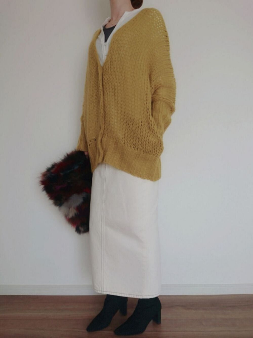 maのクラッチバッグ「(LL ACCESSORIES)リアルファーミックスカラークラッチバッグ」を使ったコーディネート