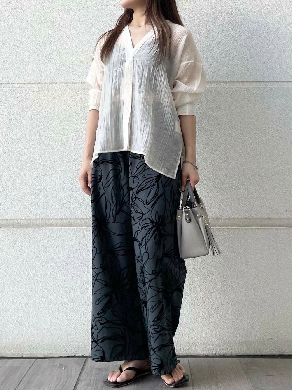 モエカ(warehouse 三井アウトレットパーク横浜ベイサイド)のシャツ/ブラウス「Vネックシアーブラウス」を使ったコーディネート