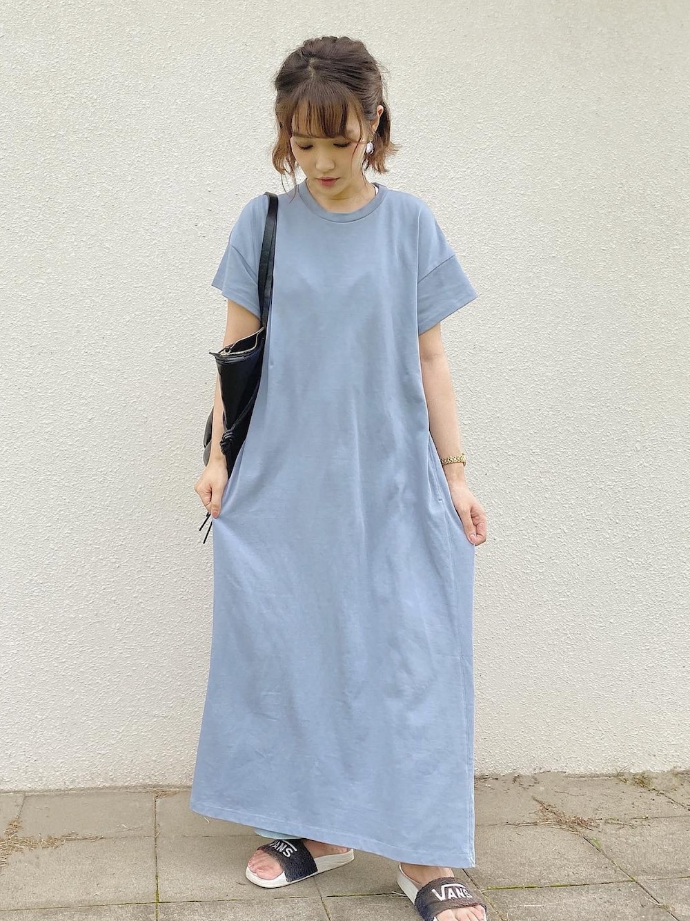 . くすんだ色が可愛いサックスブルーのワンピース すとんとした形が可愛くて丈感も長めでとてもいい! 生地がしっかりしているので、体のラインも 出すぎず一枚でさらっと着れます♡ サンダルで合わせてスポーティーにするのが私は好きでした! ポケットついてるのもポイントが高め𓅿♡ なによりカラーが爽やかで可愛いので、この夏たくさん着たいです! .