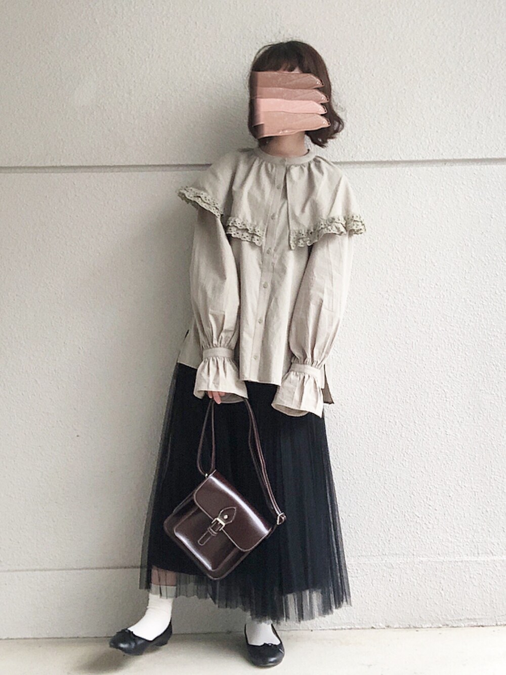 めめのシャツ/ブラウス「カットワークレースBIG衿ブラウス」を使ったコーディネート