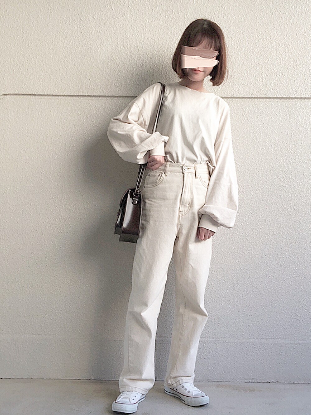 ボリューム袖がめちゃくちゃ可愛いロンT🍦 ホワイトコーデ🥛☁️