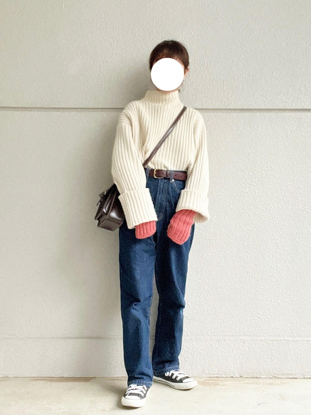 めめのニット/セーター「【新色追加】ショート丈ボトルネックワイドリブニット」を使ったコーディネート