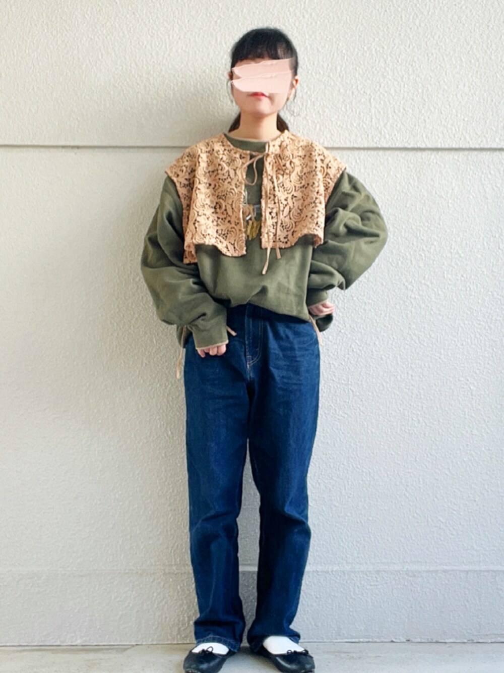 古着スウェット×デニムパンツでカジュアルコーデ🪴 シンプルになりすぎないようにつけ襟つけた🪄