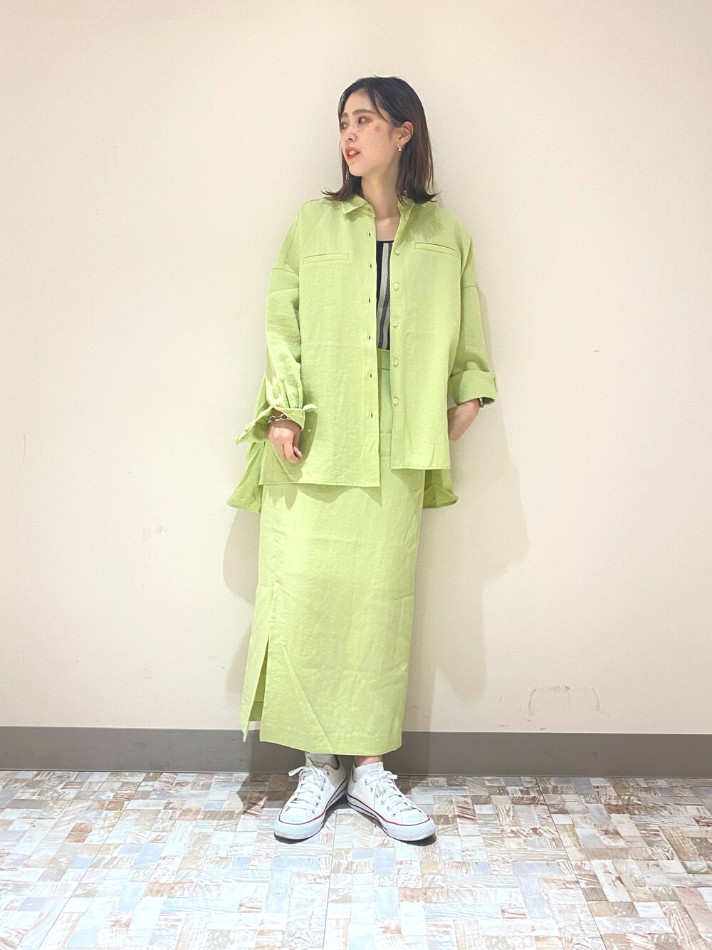 春コーデ! シャツとタイトスカートのセットアップアイテム! instagram⇨@mo2m1.s フォローお願いしますっ😽🤍 lowrysfarm公式サイトも スタイリング更新中です🤳 是非チェックしてくださいいい!