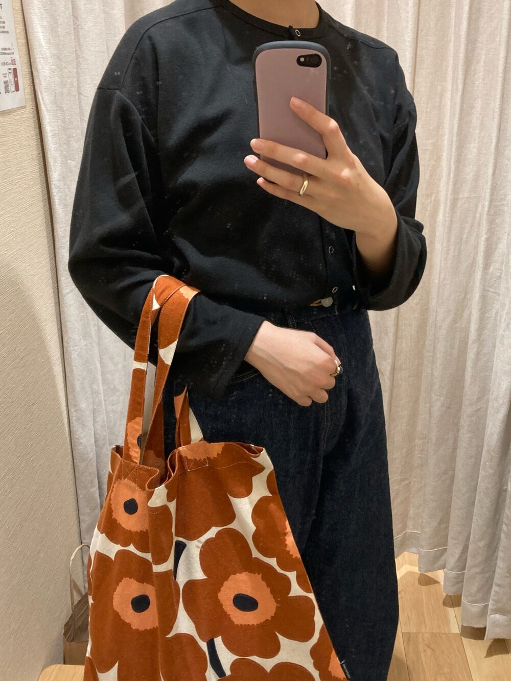シンプルコーデにmarimekkoのトートバッグ🍊